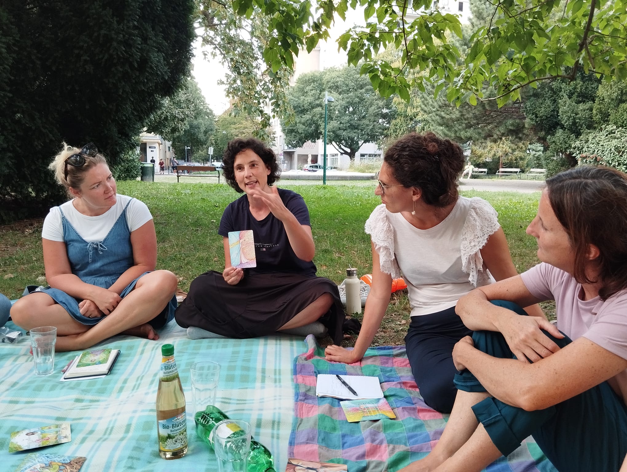 With this in mind the 5 monthly gatherings were hosted in public spaces with the possibility to eat and drink while creating space for women to rise. The spaces and the process allowed for maximum 20 women. Each encounter had a theme that was addressed by having in mind that the best sharing and deep reflection start with a low threshold, an easy entry point to kick off conversations that made women to feel safe and willing to disclose more.